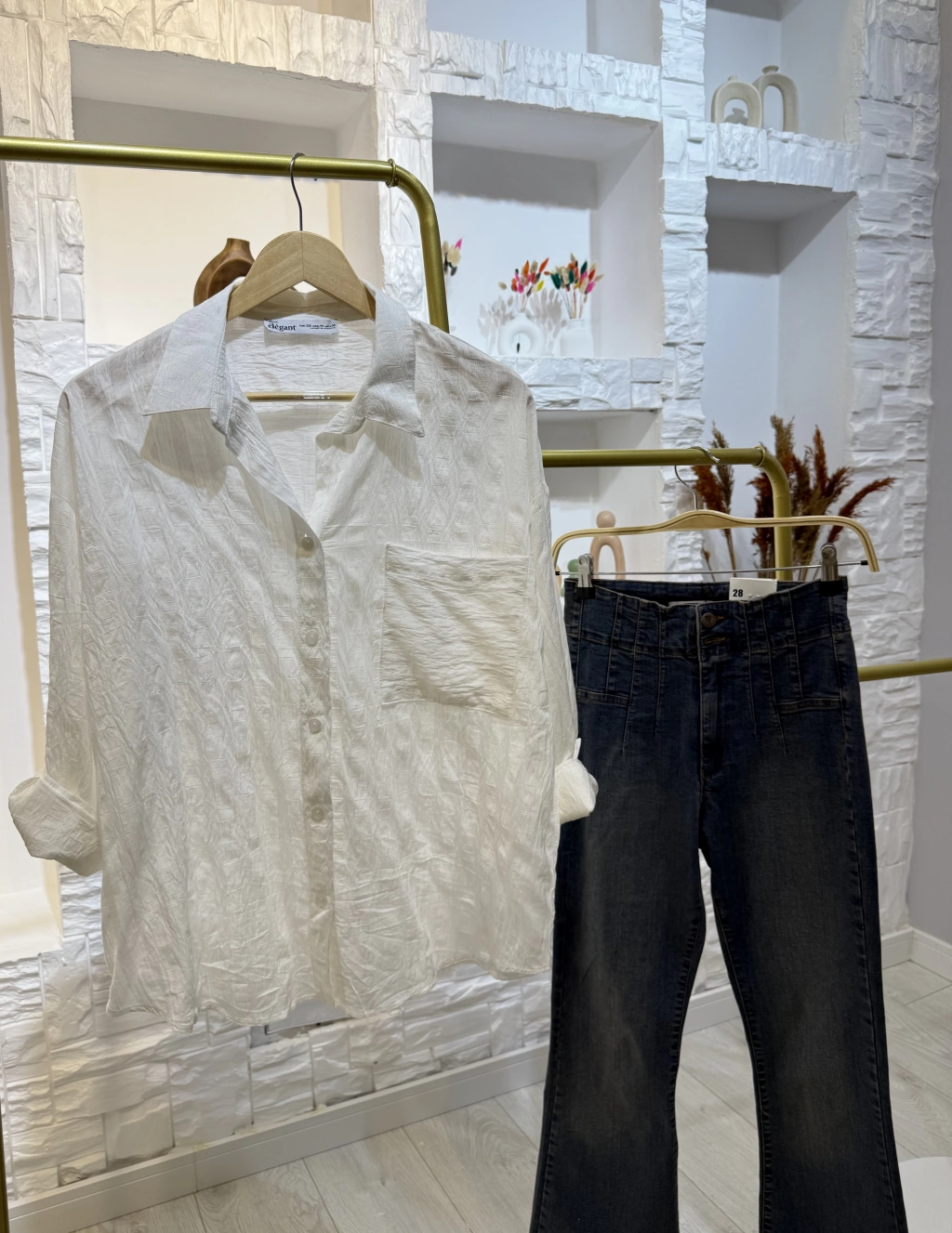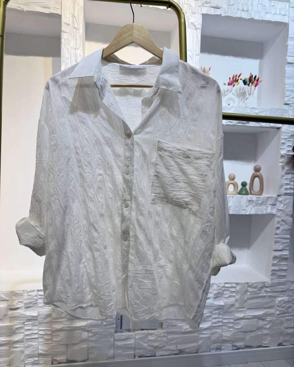 Şık Çizgi Detay Beyaz Gömlek - Trend Giyim: Çizgi detaylı tasarımıyla öne çıkan beyaz gömlek.
